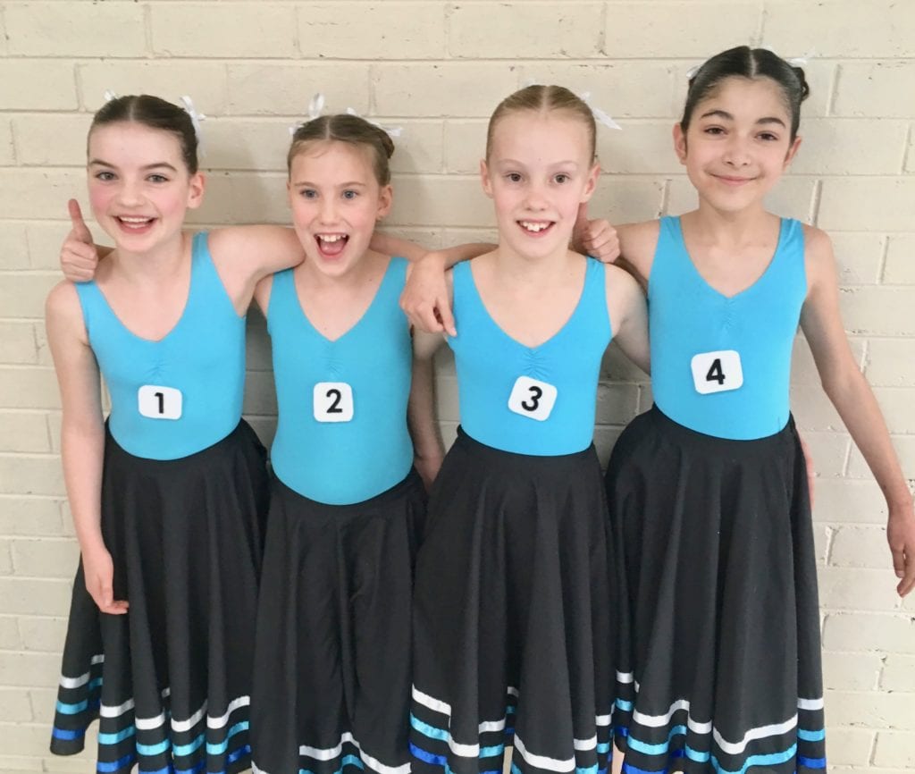 Full circle, black, cotton skirt with three layers of blue ribbon to coordinate with our dancer’s turquoise and royal blue leotards. Worn for the character component of our graded ballet classes, it is designed to emulate traditional costumes. Students learn to coordinate movements with the long skirt both free form and manipulated with the hands.